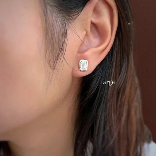 Bjorn | Knife Edge Bezel Emerald Cut Earring Studs (Solid gold)