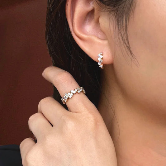 Confetti | Baguette & Round Cut Bar Hoop Earrings (Solid Gold)