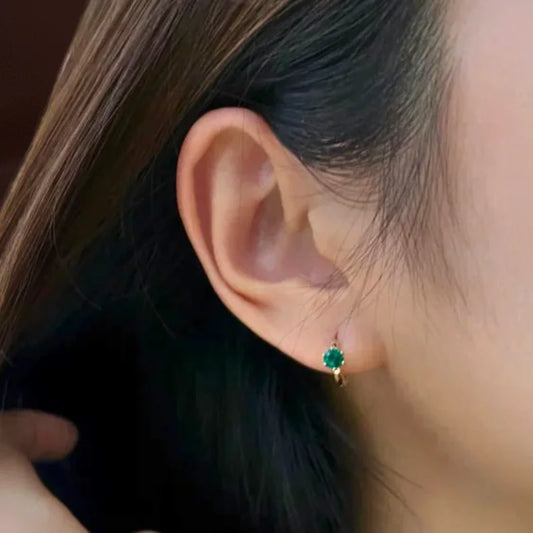 Frost | Green Emerald Solitaire Hoops (Solid Gold)