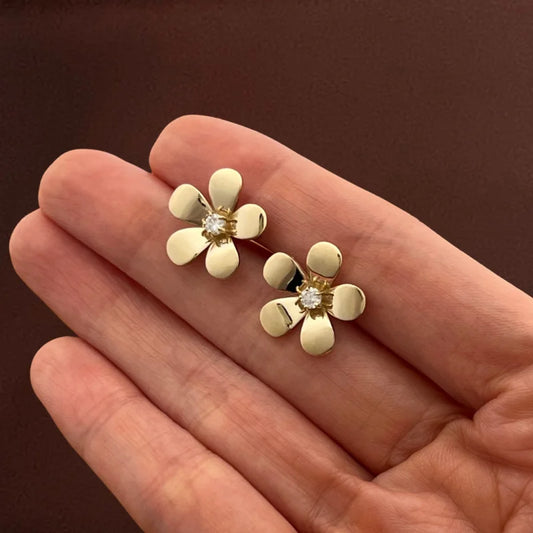 Petale | Flower Earrings with Diamond or Moissanite (Solid Gold)
