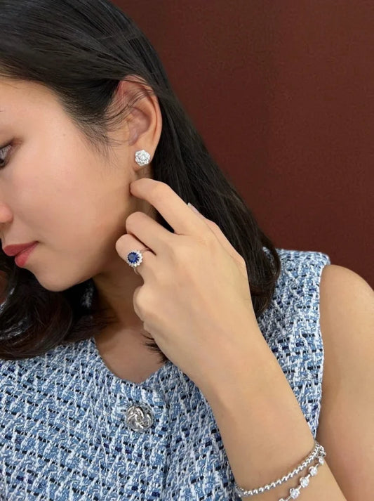 Neo | Lab-Grown Paraiba & Baguette Halo Studs (Solid Gold)