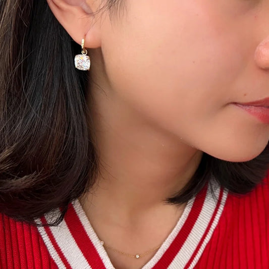 Shanghai | Square Cushion Drop Hoop Earrings (Solid Gold)
