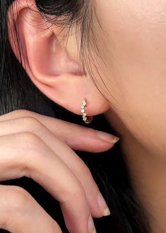 Pillar+ | Pave Huggie Hoop Earrings (Solid gold)