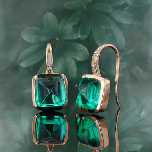 Terra-Lush | Lab-Grown Columbian Emerald & Diamond Earrings (Solid Gold)