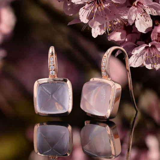 Terra-Sakura | Rose Quartz Drop Earrings (Solid Gold)