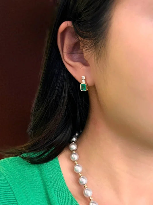 Verde | Columbian Emerald Stud Earrings (Solid Gold)