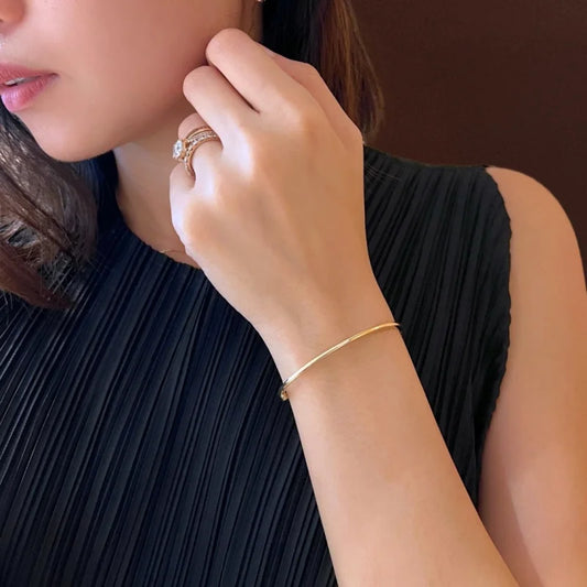 The Mini | Skinny Plain Bangle Bracelet (Solid Gold)