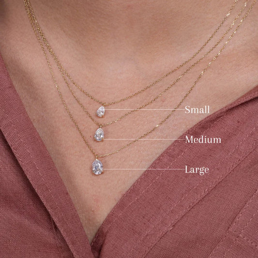 Teardrop (Pear) | Moissanite Solitaire Necklace (Solid Gold)