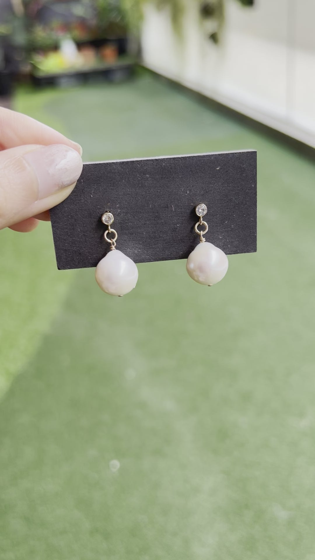 Made with organic, large-sized baroque pearls with a light rainbow luster and subtle glow. Enjoy the distinct shapes, textures and colours of each pearl. No two pieces are the same, so you'd be wearing a one-of-a-kind pair of earrings!