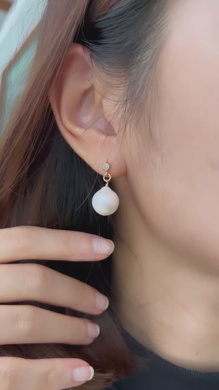 Pompom | Freshwater Baroque CZ Diamond Earrings
